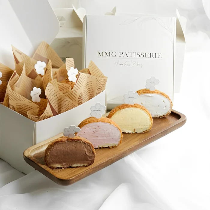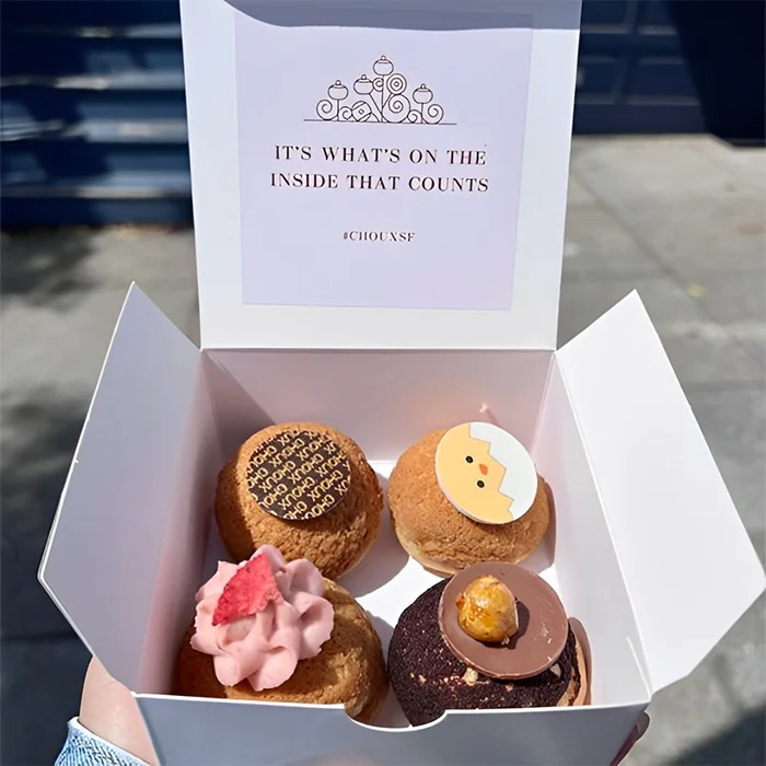 Our Choux Boxes at Custom Wholesale Boxes USA are designed to hold delicate pastries securely while enhancing presentation. Made from high-quality, food-safe materials, these boxes prevent damage and maintain freshness. Fully customizable with brand logos, colors, and designs, they offer a professional look for bakeries, cafés, and dessert shops. Sturdy and eco-friendly, Choux Boxes provide convenient transport for cream puffs, éclairs, and similar treats. They elevate customer experience through both practical protection and stylish packaging. Perfect for gifting, retail, or delivery, these boxes reflect your brand’s commitment to quality and premium presentation.